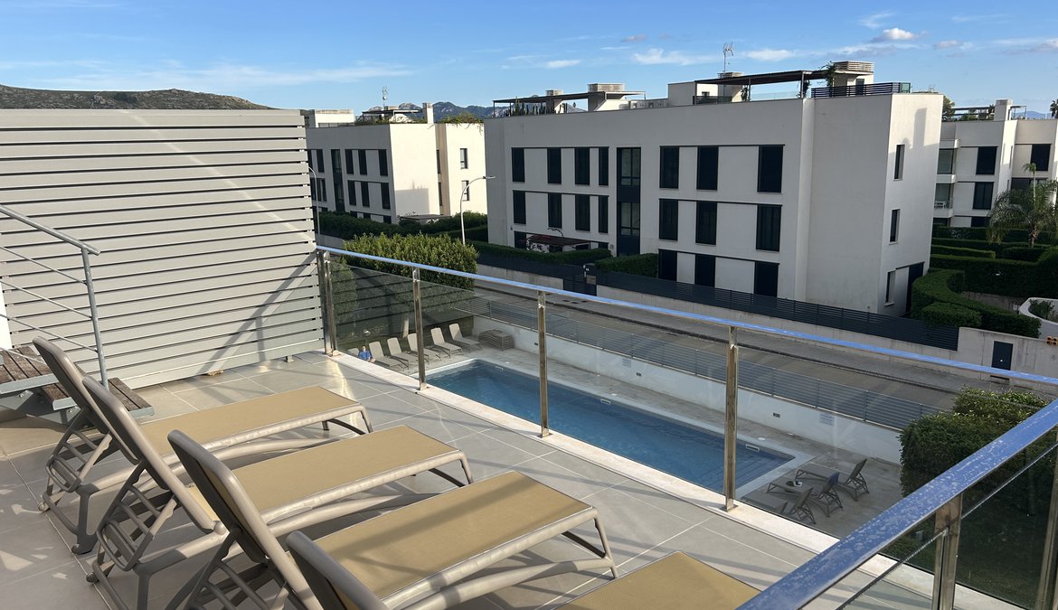 Layout: This lovely 2 floor Penthouse is accesed from the back of the building first floor: entrance with cooridor to bedrooms and bathrooms, 2 doble bedrooms with ensuite shower rooms, twin bedroom and in the cooridor is another full bathroom with a bath and shower, at the front facing the sea is the open kitchen and dining room, to one side is the terrace and outside dinning area. Upsatirs: is the second terrace with wonderful views of the mountains and Puerto Pollensa with comfortabe sofas and shaded area to chill out on hot summer eveneings.